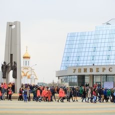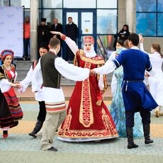 Началось все с митинга на площади перед главным корпусом. Холодная погода не испортила настроения. Студенты пришли в ветровках цвета своих институтов. Звучала народная музыка. Танцевальный ансамбль исполнил красивую композицию «Русь православная».