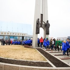 В заключение митинга по доброй традиции Иван Даниленко провел всех через символичные Врата знаний. У подножия памятника Кириллу и Мефодию участники митинга сфотографировались на память.