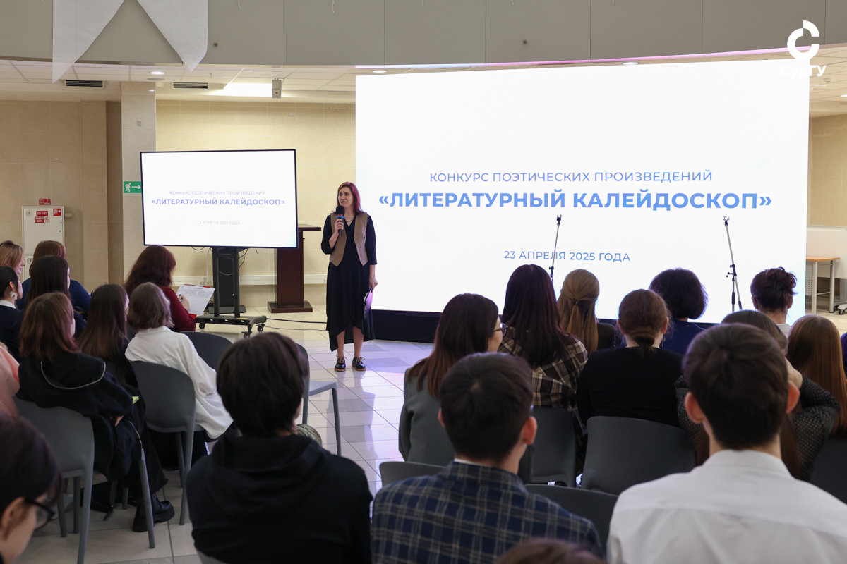 В атриуме Библиотечно-информационного центра СурГУ 23 апреля состоялся пятый юбилейный конкурс поэтических произведений «Литературный калейдоскоп». Организаторами выступили преподаватели кафедры иностранных языков Татьяна Царская и Ирина Савш.