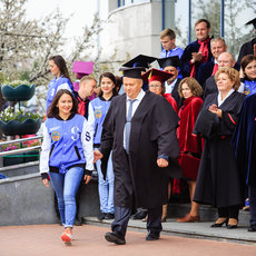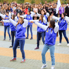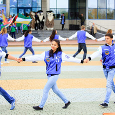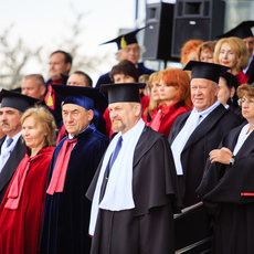Под звуки гимна студенчества Gaudeamus ректор, почетные гости и члены студенческого актива университета выпустили в небо белых голубей – символ мира и добра, после чего первокурсникам торжественно представили их наставников – директоров институтов.