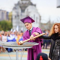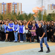 По доброй традиции председатель студенческого совета СурГУ Ярослав Мищенко и первокурсница Елизавета Червяковская зажгли символической огонь в Чаше знаний. В завершении 1096 новобранцев (именно столько молодых югорчан пополнили в этом году ряды студентов СурГУ на очном отделении бакалавриата и специалитета) вошли во Врата знаний – прошли под аркой памятника небесным покровителям университета, равноапостольным Кириллу и Мефодию. В добрый путь ребят проводили губернатор округа, глава города, ректор и председатель Попечительского совета.