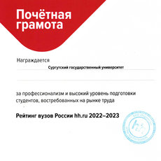 "СурГУ занял 37 место из 410 в ежегодном рейтинге вузов России 2022-2023 крупнейшей платформы онлайн-рекрутинга - HeadHunter. Его ключевая цель - оценить востребованность выпускников российских вузов, разместивших свои резюме на сайте hh.ru, среди работодателей", - говорится в сообщении.