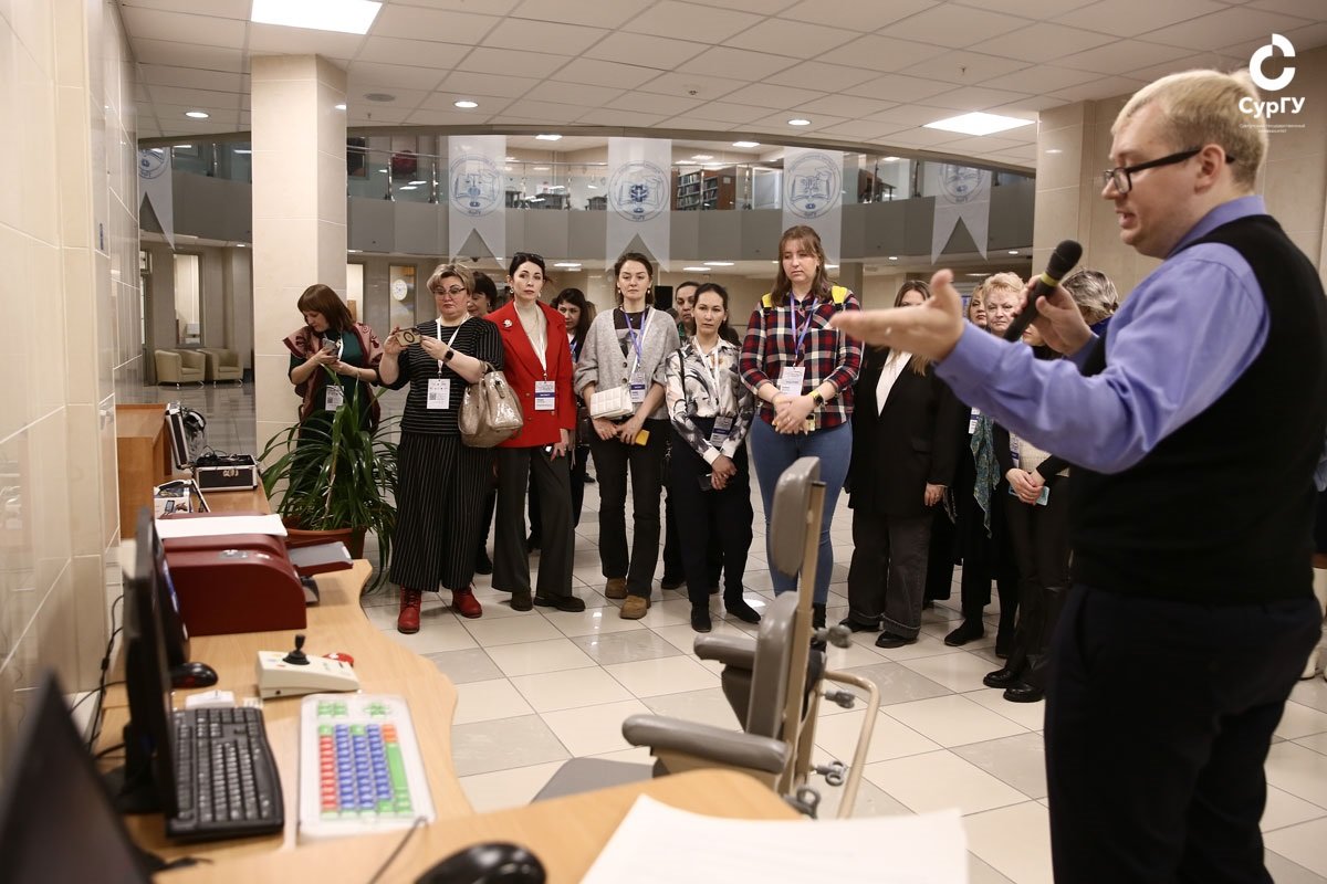 В атриуме Библиотечно-информационного центра СурГУ собравшимся представили видеопаспорт университета, в котором показали, как доступная среда реализуется в вузе. СурГУ предоставляет возможности и оборудование для обучения и интеграции людей с нарушениями зрения, слуха и опорно-двигательной функции: в корпусах имеются зрительная индикация, тактильные стенды и звуковые информаторы, лестницы оборудованы пандусами и подъемниками для маломобильных студентов. В университете действует Центр инклюзивного образования.