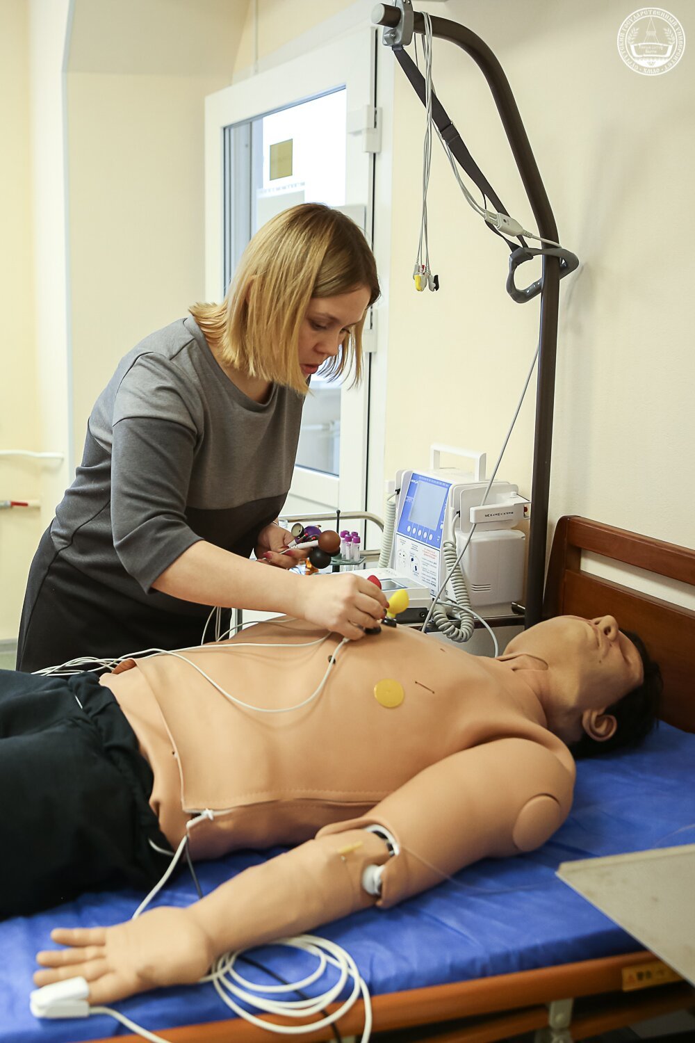 В тренировочных комнатах, оборудованных по последнему слову техники, имеются: компьютерный класс, 12 станций объективного структурированного комплексного экзамена, оснащенных системой видеонаблюдения и аудиофиксации, палаты реанимации, интенсивной терапии, процедурный кабинет, операционная (родильный зал), манипуляционные для отработки практических навыков в эндоскопической хирургии, предоперационная, комната с полноразмерным макетом салона реанимобиля. Здесь студенты оказывают первую медицинскую помощь роботам-симуляторам, принимают роды, а на манекене, который точь-в-точь напоминает живого человека, оттачивают мастерство ведения сложных операций.
