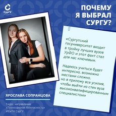 – Сургутский госуниверситет входит в тройку лучших вузов УрФО и этот факт стал для нас ключевым. Надеюсь учиться будет интересно, возможно местами сложно, но я приложу все усилия, чтобы выйти из стен вуза высококвалифицированным специалистом, – обещает Ярослава.