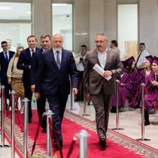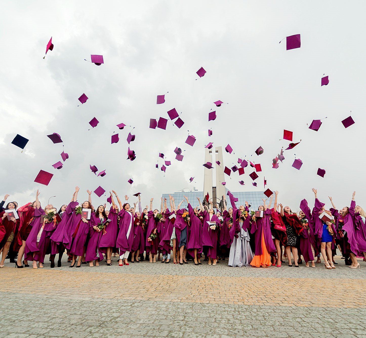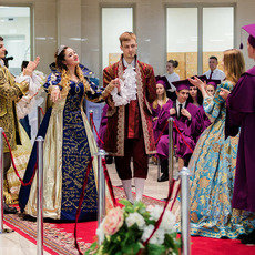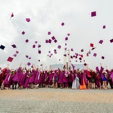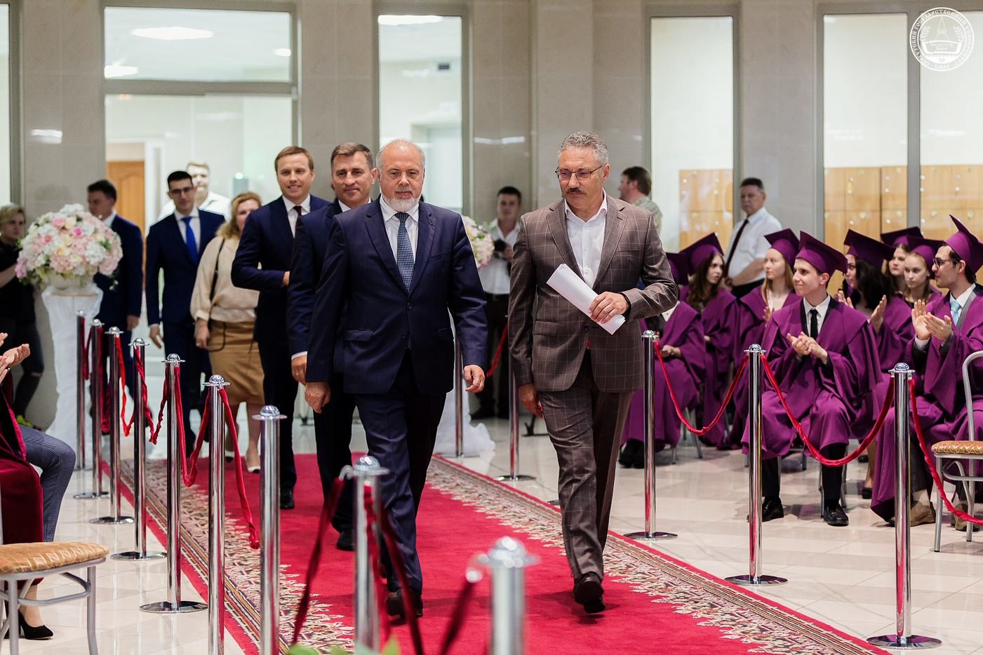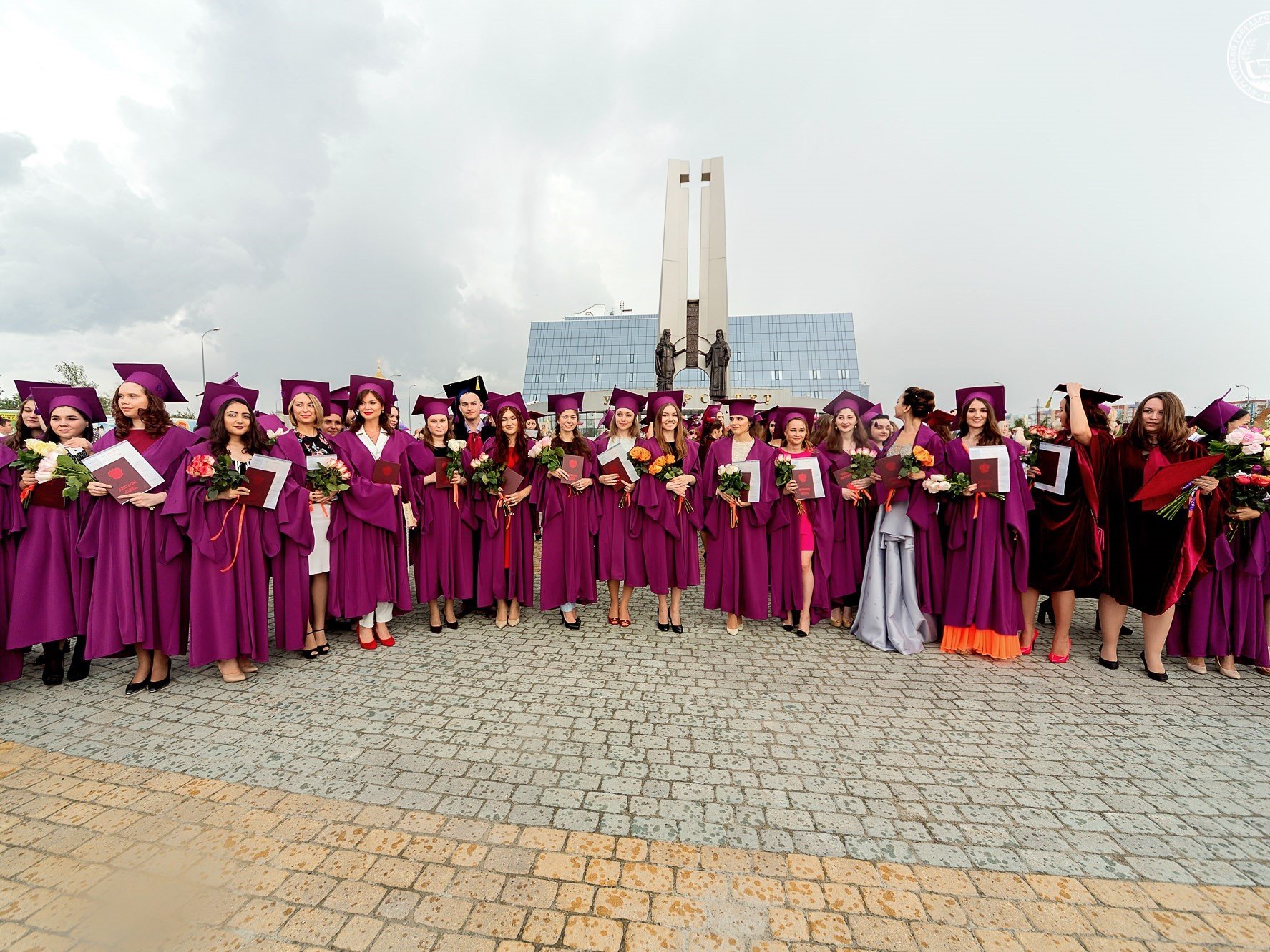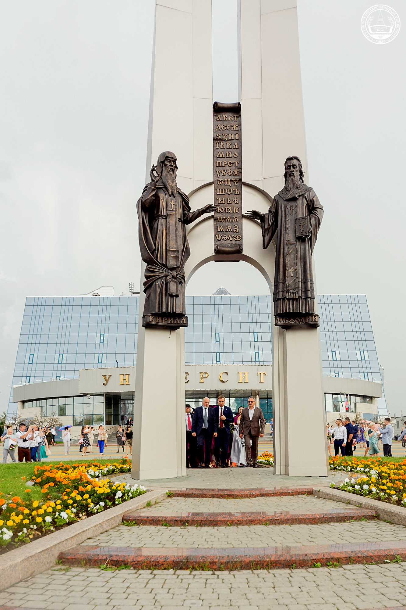 Под занавес мероприятия, по старой доброй традиции, вчерашние студенты во главе с ректором в последний раз прошли через врата знаний, покровителей СурГУ Кирилла и Мефодия, подбросив в небо конфедератки.