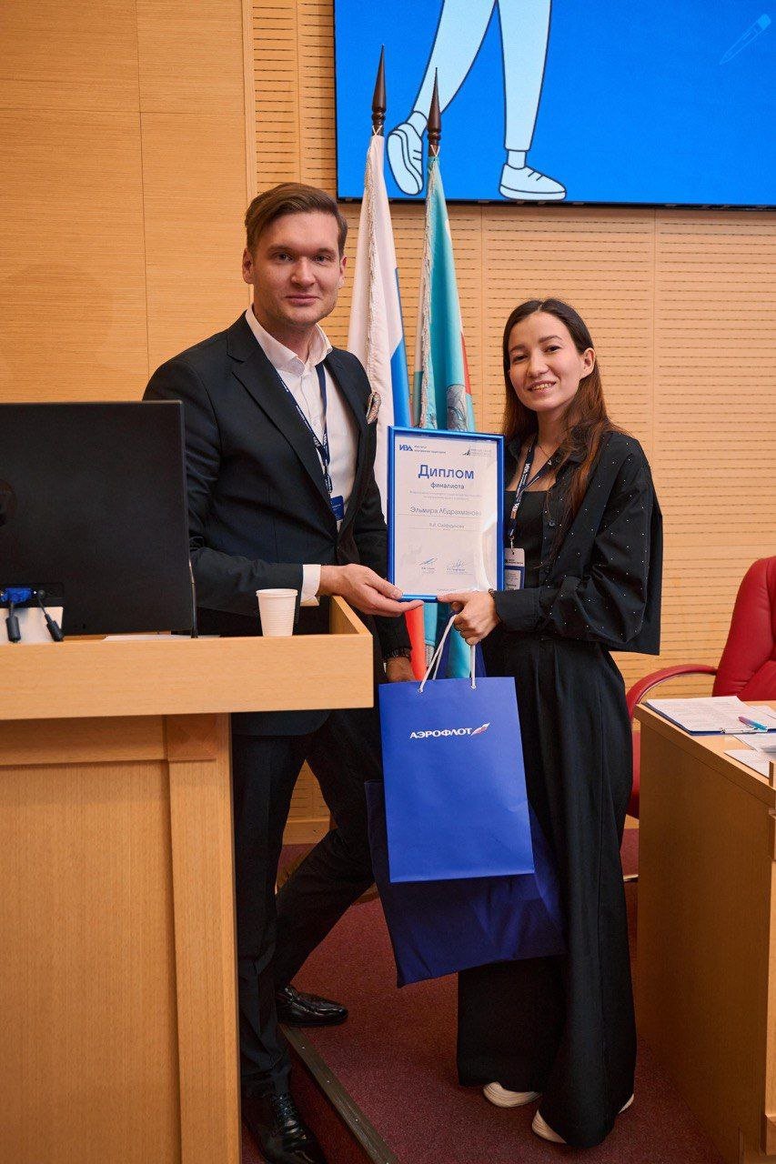 Эльмира Абдрахманова взяла спецприз. За работу «Внутренний аудит в рамках реализации ESG-концепции на примере ПАО “Россети”» она получила возможность пройти стажировку именно в этой компании.