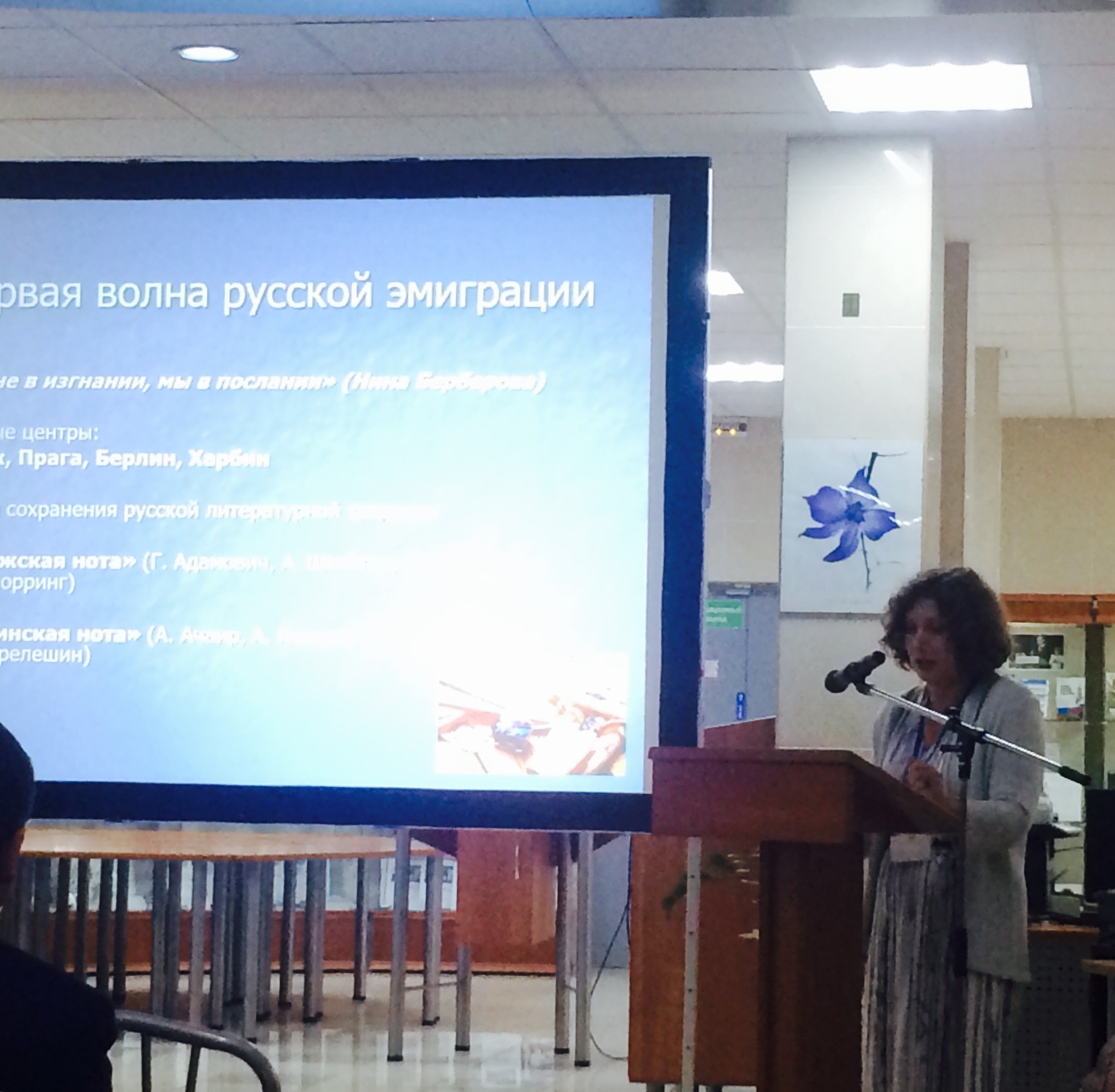 На пленарном заседании с докладом «Русское литературное зарубежье в контексте филологического образования: возвращение исторической памяти» выступила Александра Хадынская, к. филол. н., доцент кафедры лингвистики и переводоведения, озвучив актуальную проблему изучения культурного наследия русского мира в школах и вузах.