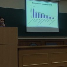 — «Конкуренция, конечно, была высокая, ребята все сильные и работы достойные. Исследовательские институты Москвы и Санкт-Петербурга представили очень интересные масштабные разработки, что вызвало еще больший интерес к занятию научной деятельностью», — отмечает Фатима Омарова. — «Тема моего доклада была посвящена кожным проявлениям системной красной волчанки (СКВ) и их корреляции с активностью заболевания. Это тяжелое системное заболевание соединительной ткани, многообразие клинических проявлений которого затрудняет диагностику, особенно на ранних этапах. Поражение кожи и слизистых — наиболее частый синдром СКВ, нередко имеющий первостепенное диагностическое значение. В исследовании мы оценили характер, частоту и особенности кожных проявлений при красной волчанке у 53 пациентов (6 мужчин и 47 женщин) в возрасте от 20 до 62 лет, а также проанализировали корреляцию между кожными проявлениями и активностью СКВ. В результате основными кожными проявлениями СКВ, определяющими активность заболевания, стали: дерматит, фотосенсибилизация, пурпура, дискоидная сыпь и lupus-панникулит (глубокая красная волчанка). Фотосенсибилизация сопряжена с кожными проявлениями и развитием артрита. Алопеция и синдром Рейно также являются проявлениями заболевания, имея при этом отрицательную корреляционную зависимость с активностью заболевания. К сожалению, красная волчанка не лечится, единственное — с помощью иммуносупрессивных препаратов можно прийти к стойкой ремиссии. Я планирую дальше изучать данную проблему и проводить необходимые исследования в этой области».