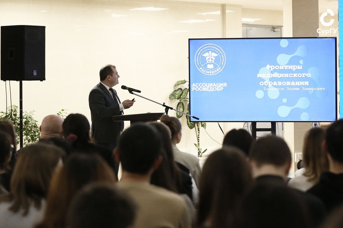 На пленарном заседании были заслушаны четыре доклада. Так, директор Института подготовки специалистов медицинского образования Российской медицинской академии непрерывного профессионального образования Министерства здравоохранения Российской Федерации Залим Балкизов раскрыл тему «Фронтиры медицинского образования». А заведующий кафедрой акушерства, гинекологии и перинатологии СурГУ, президент Сургутского окружного клинического центра охраны материнства и детства Лариса Белоцерковцева на примере Центра охраны материнства и детства рассказала о современных вызовах и практике в формировании теоретической и практической подготовки врачебных кадров в Ханты-Мансийском автономном округе – Югре. Не менее интересный доклад «Трехэтапный образовательный континуум: от студента к высокотехнологическому медицинскому специалисту» представили заведующий кафедрой кардиологии СурГУ, главный врач Окружного кардиологического диспансера «Центр диагностики и сердечно-сосудистой хирургии» Ирина Урванцева и доцент кафедры кардиологии СурГУ Антон Воробьев. Заместитель директора Института эволюционной физиологии и биохимии им. И. М. Сеченова РАН Кира Ким емко и информативно осветила тему «Нейротехнологии для изучения регуляторных механизмов нервной системы. От фундаментальных исследований к технологиям коррекции».