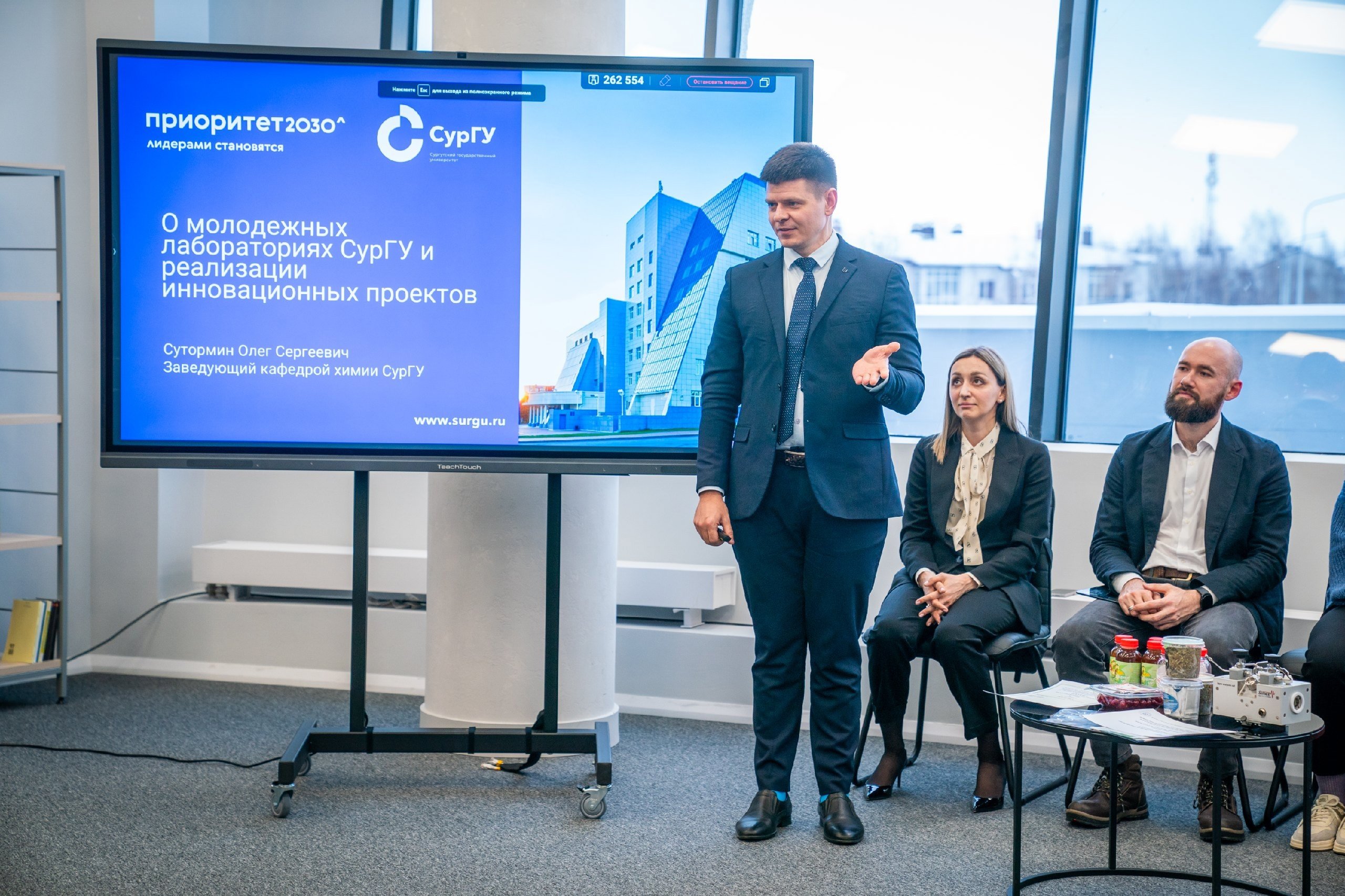 Особый акцент в своем докладе кандидат биологических наук Олег Сутормин сделал на молодежных лабораториях, открывающихся в текущем году в Сургутском госуниверситете по таким перспективным направлениям, как микрофлюидные технологии, малотоннажная химия и лаборатория «Биотех». Это база для Инновационного научно-технологического центра «Юнити-Парк».