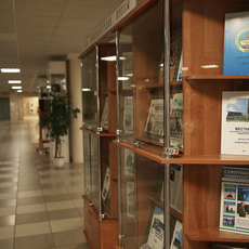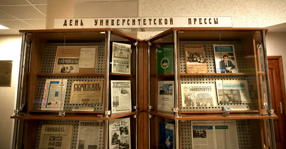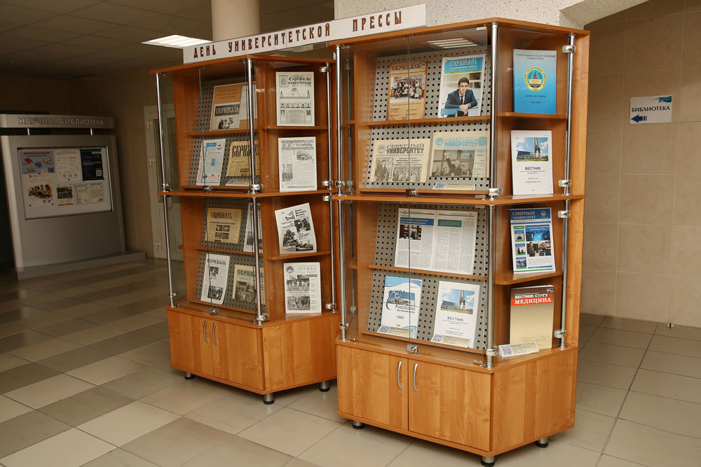В холле второго этажа была организована специализированная выставка, посвященная печатным изданиям вуза.