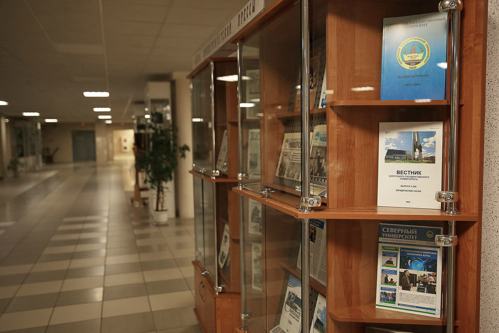 В образовательной организации выпускаются такие корпоративные издания как: студенческая газета «Скрижаль», которая издается с 1993 года, научный культурно-просветительский журнал «Северный регион: наука, образование, культура» (дата выхода 2000 год), общественно-политическая газета «Северный университет», датируемая 2001 годом, научно-практический рецензируемый журнал «Вестник кибернетики» (2002 год), научно-практический рецензируемый журнал «Вестник СурГУ. Медицина», выпускаемый с 2008 года, а также рецензируемый научный журнал «Вестник Сургутского государственного университета», который издается с 2013 года и др. Для более оперативной подачи информации действует и сайт surgu.ru, а также аккаунты в социальных сетях, где публикуются свежие актуальные новости из жизни университета.