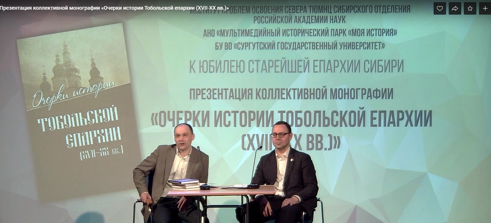 В Мультимедийном историческом парке «Россия – моя история. Югра» 19 марта состоялась онлайн-презентация коллективной монографии «Очерки истории Тобольской епархии (XVII–XX вв.)», подготовленной при участии историков Сургутского госуниверситета и Института проблем освоения Севера СО РАН.