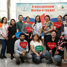 В канун празднования Международного дня солидарности трудящихся представители Профсоюзной организации Сургутского госуниверситета во главе с председателем Ириной Журавель и профсоюзным комитетом в поддержку человека труда, российской армии и Президента РФ Владимира Путина присоединились к акции «ZA МИР! ТРУД! МАЙ! ZA МИР БЕЗ НАЦИЗМА!».