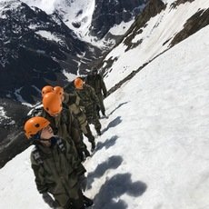— «Каждый день был расписан буквально по минутам. Чтобы минимизировать потери при восхождении на перевал «Учитель» (примеч. альпинистское название перевала в отрогах Северо-Чуйского хребта, который ведет из долины ущелья Актру в соседнюю с запада долину между вершинами Кызыл-Таш и Юбилейная) и прохождении ледника Актру мы досконально изучали местность, учились делать переправу, вязать узлы и многое другое. Конечно, были и сложности. Акклиматизация, ежедневные физические нагрузки стали сложным испытанием для курсантов. Но несмотря на их юный возраст, а им всего по 9, 13, 15 лет они мужественно преодолели все трудности. А в качестве награды бойцы получили нагрудные знаки «Альпинист России» и удостоверения, — с гордостью рассказывает инструктор Центра «ЛИС» Николай Боев».