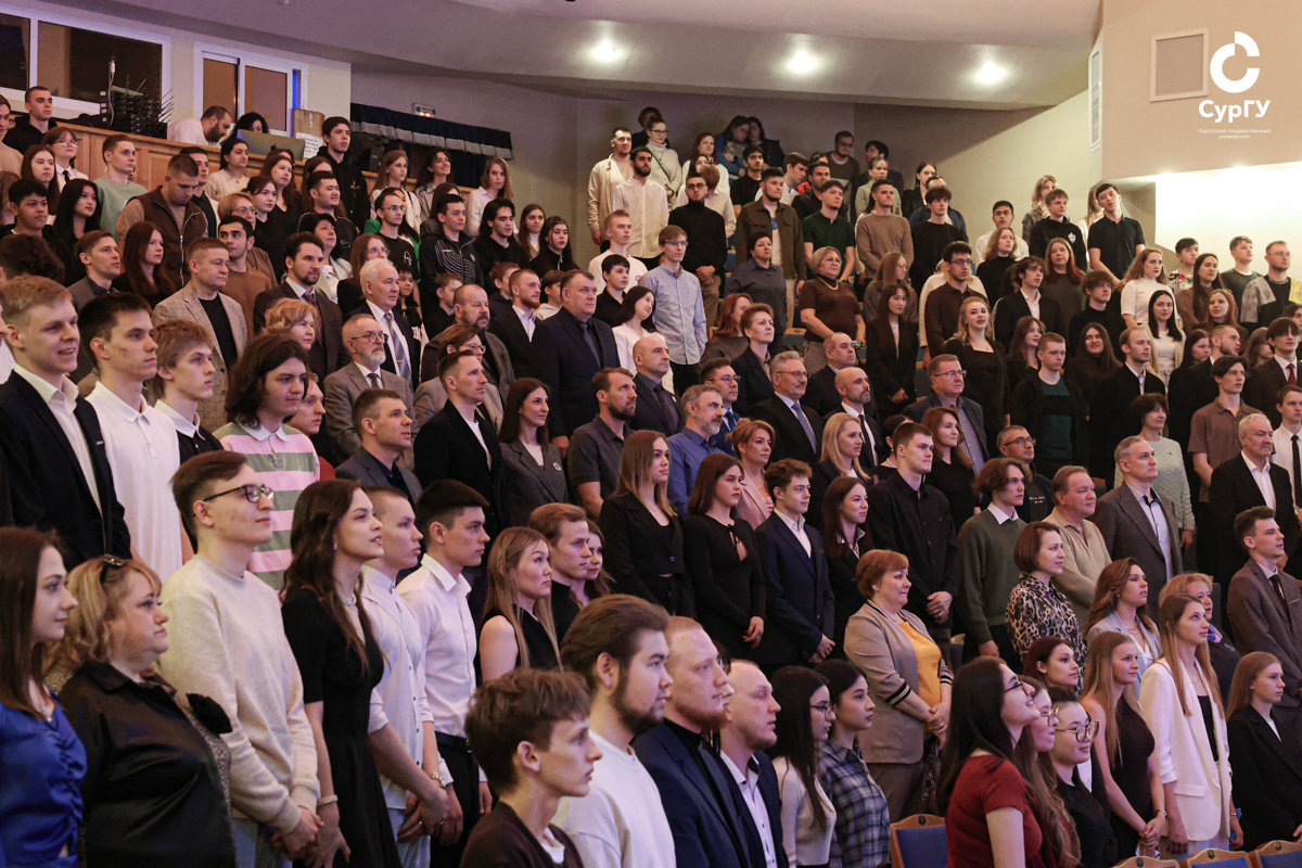 В Театре Сургутского государственного университета 25 апреля состоялась торжественная церемония «Спортивная элита СурГУ», на которой чествовали студентов, тренеров, преподавателей и партнеров, внесших вклад в развитие университетского спорта. В мероприятии приняли участие десятки представителей спортивного сообщества, включая членов сборных команд вуза по баскетболу, самбо, плаванию, спортивному ориентированию и другим дисциплинам.