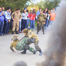 К традиционным испытаниям в эстафете на туристической полосе, где участники преодолевали условное болото, веревочные переправы, ставили палатки и упаковывали рюкзаки, в этом году добавились еще два – инсценировка патриотической песни и «Тропа разведчика». На последней студенты должны были проползти под «колючей проволокой», отразить нападение диверсантов, оказать помощь раненому и доставить его до финишной черты.