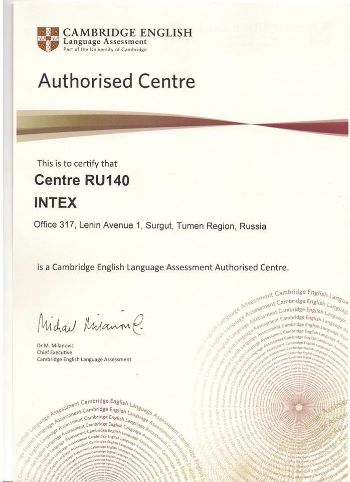 Авторизованный кембриджский «Центр международного тестирования – ИНТЕКС» Сургутского государственного университета: CAMBRIDGE EXAM CENTRE-RU140 предлагает услуги по сдаче престижных международных экзаменов по английскому языку: