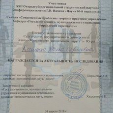 В рамках работы секции молодые исследователи представили доклады, посвященные различным аспектам экономики и управления. Так, например, студентка гр. 405-61м Николь Тимохова представила на суд жюри и слушателей доклад о роли участия некоммерческих организаций Югры в оказании услуг в социальной сфере. А студент гр. 405-51м Кайрат Кемпиров выступил с докладом «Социальный рейтинг как инструмент повышения гражданской активности общества». Исследователь уверен, что именно социальный рейтинг позволит значительно увеличить гражданскую активность.