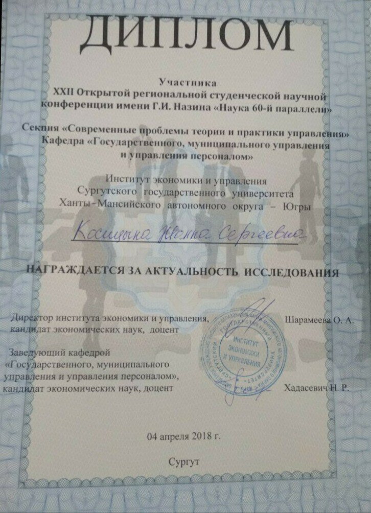 4 апреля 2018 года в стенах Сургутского госуниверситета прошла ежегодная ХXII Открытая региональная студенческая научная конференция имени Г. И. Назина «Наука 60-й параллели».
