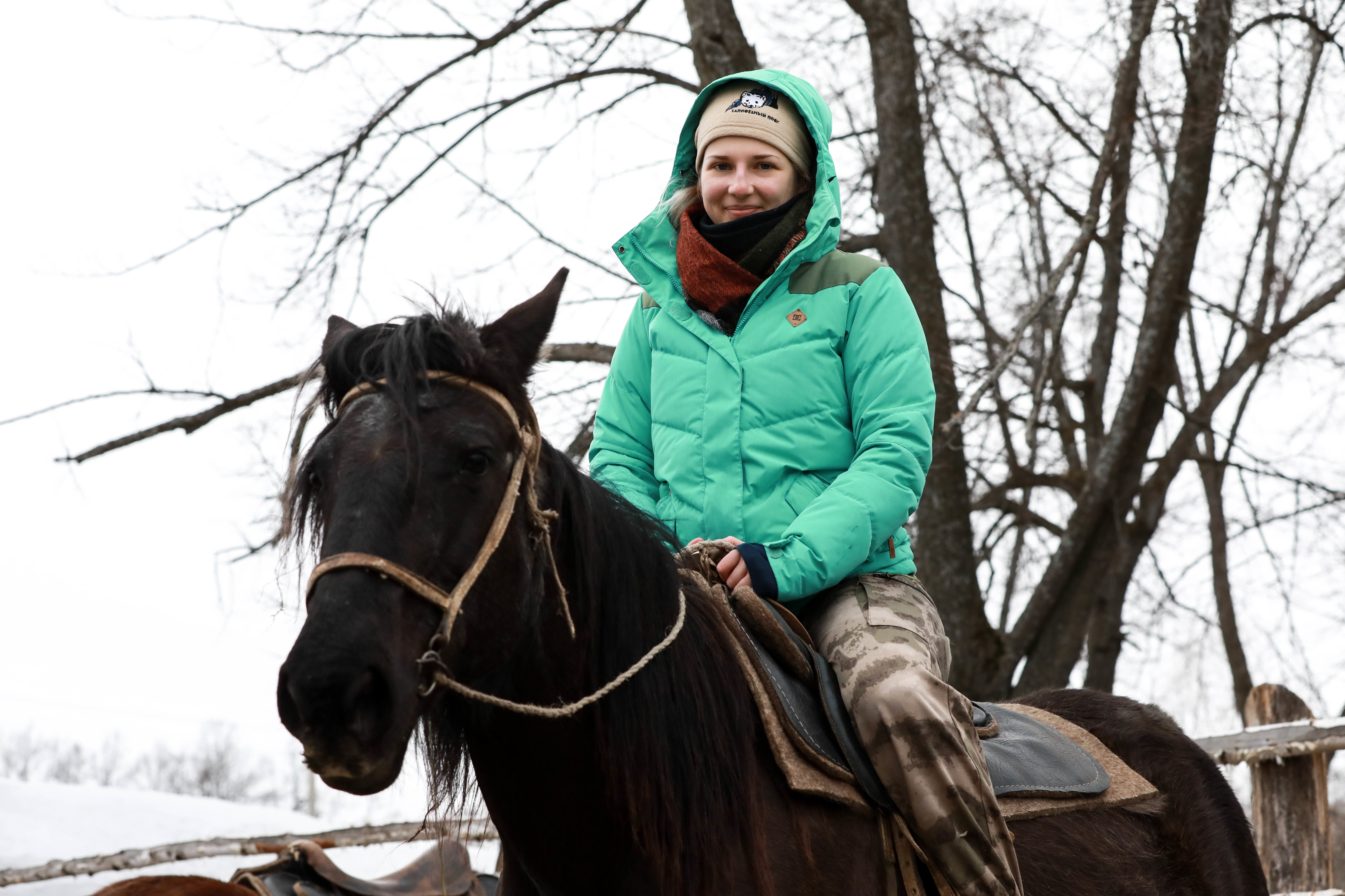 «Сегодня первая точка нашей экспедиции. Национальный парк «Башкирия». Мы побывали на конюшне, покатались на лошадях. Затем все отправились на смотровую площадку «Ласточкино гнездо». Именно тут видно соединение реки Белой и Нугушского водохранилища. Водохранилище замерзшее, а берега изо льда бирюзового цвета, волшебно! Сыро, мокро и лужи. Вокруг — весна…».