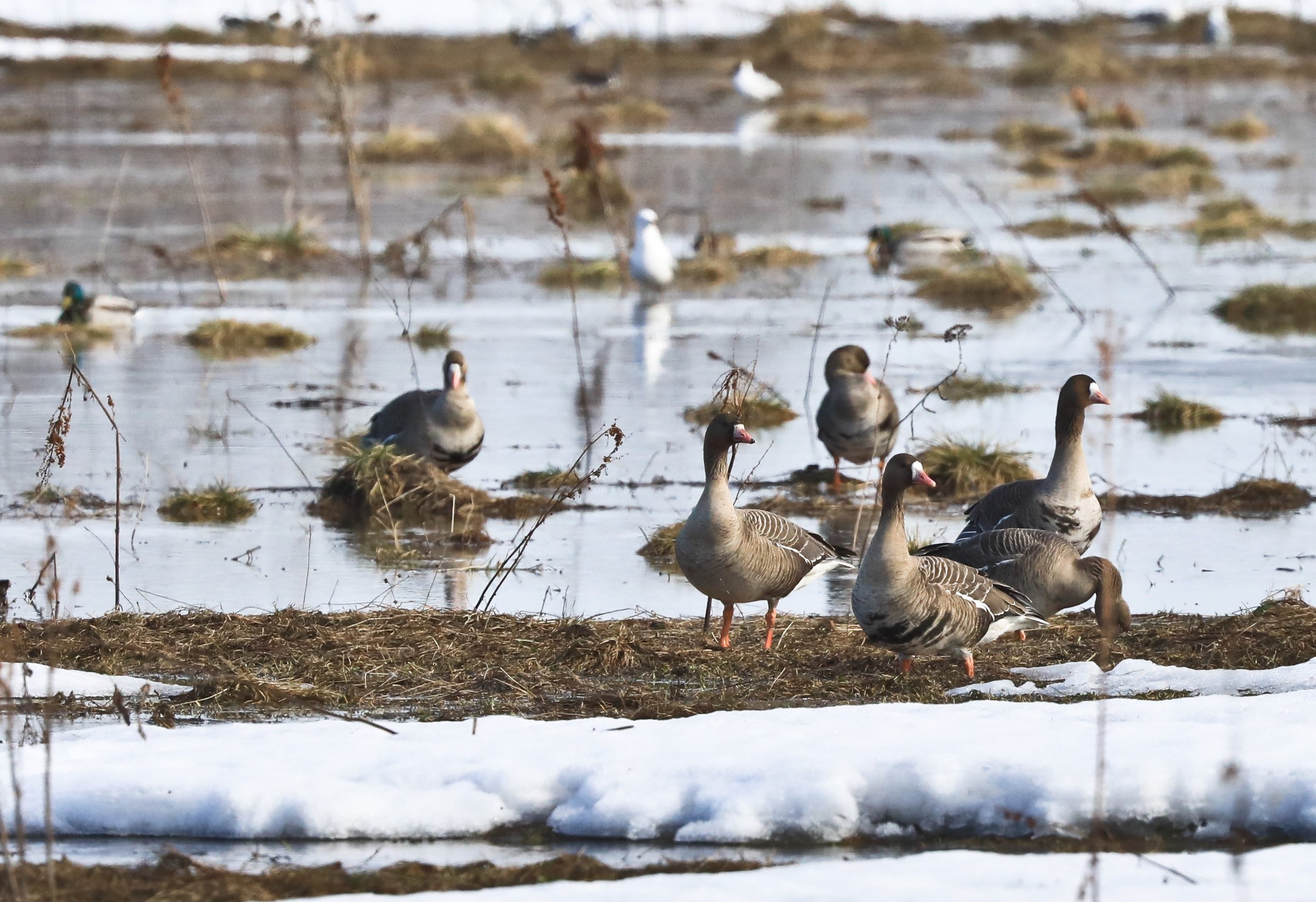 Много чибисов летало (маленькая белая птица — прим. авт.), стаи гусей, журавли. Слышали, как токуют глухари, но увидеть их, к сожалению, не удалось.