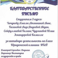 — Приятно, когда твою работу ценят, когда наших молодых специалистов рекомендуют, для них это большой опыт, который, безусловно, благоприятно скажется на их будущем. Хорошие юристы всегда были и будут востребованы в профессии, главное хорошо себя проявить и зарекомендовать, а дальше, как говорится, диплом будет работать на вас.