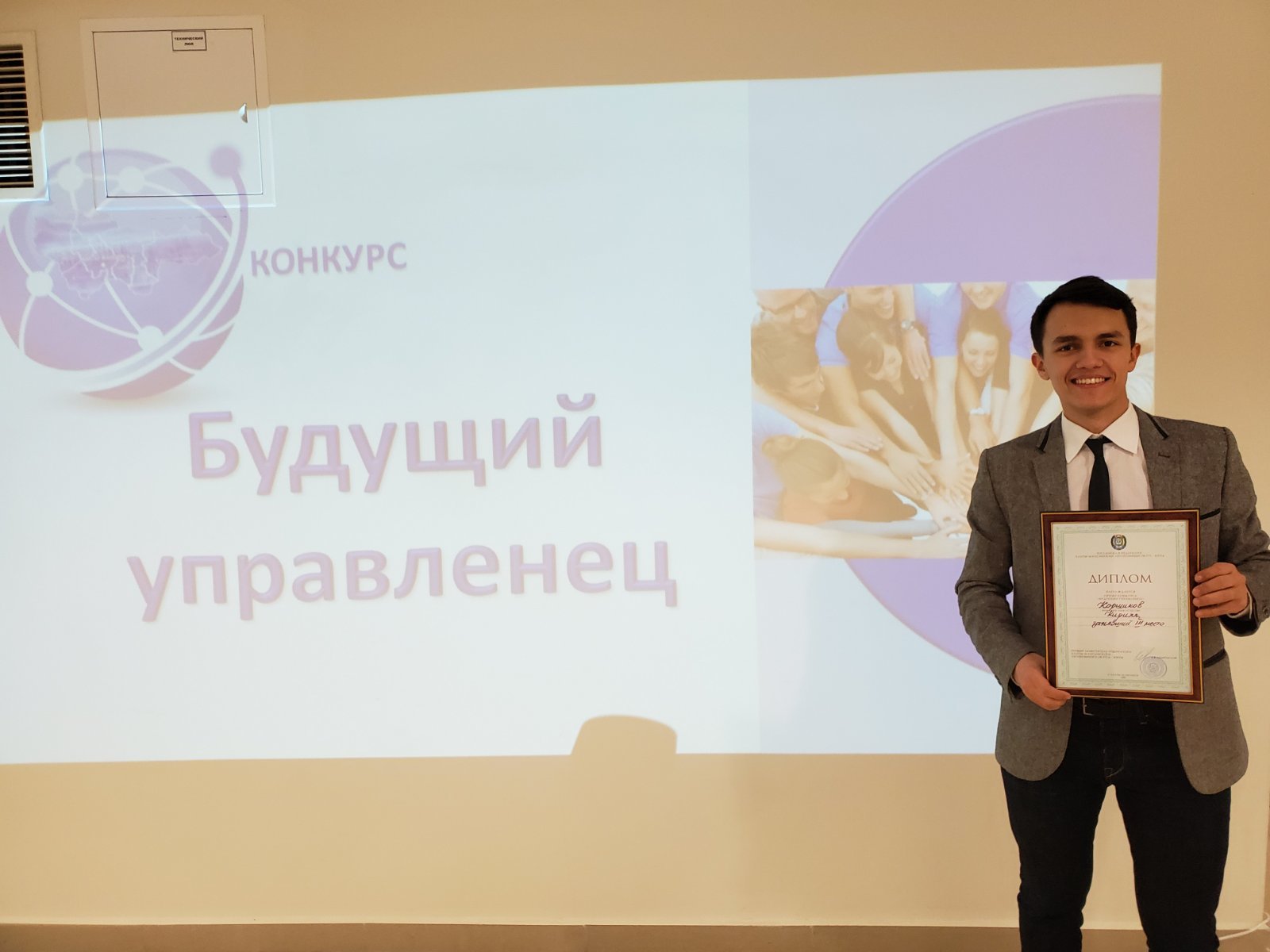 В торжественной обстановке нашему студенту был вручен диплом, а также будет выплачена денежная премия и предоставлено право прохождения краткосрочной деятельности в одном из органов государственной власти.