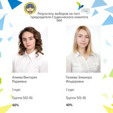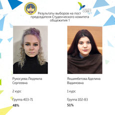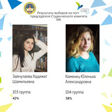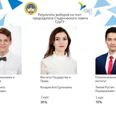 За победительницу отдали голоса 36 % студентов. 35 % и 18 % получили Никита Лескин и Рустам Танеев.