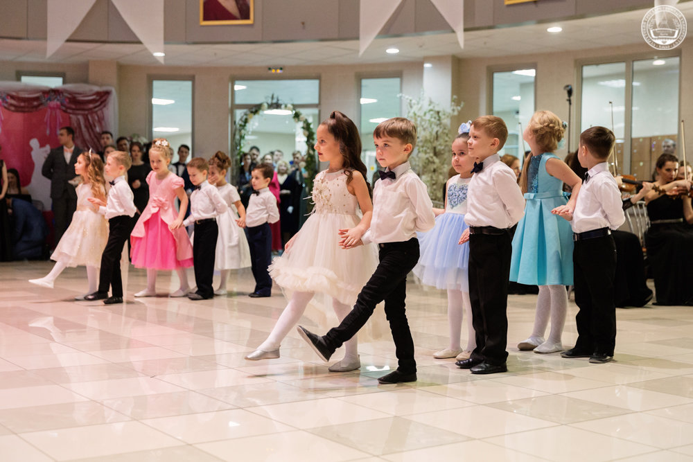 Помимо светских танцев кавалеров и дам, на балу выступили юные воспитанники Центра развития талантов ребенка. Под музыку Фредерика Шопена – Полонез № 3 – дети исполнили торжественный танец-шествие.