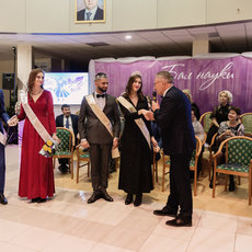 В рамках светского торжества науки 24 студентам, занесенным на Доску Почета, вручили сертификаты. Одна из выдающихся студентов СурГУ учится в Институте государства и права. «Бал науки» у меня олицетворяется с первым балом любимой героини романа-эпопеи «Война и мир» Наташи Ростовой!» – поделилась Валерия Жогальская. Студентка призналась, что принимает участие в этом торжестве впервые. Еще на первом курсе она дала себе слово вальсировать на балу. И спустя два года, благодаря успехам в научной и внеучебной деятельности, третьекурсница СурГУ вместе со своим партнером – Эмилем Пашаевым, студентом 4-го курса Медицинского института, закружились в танце.