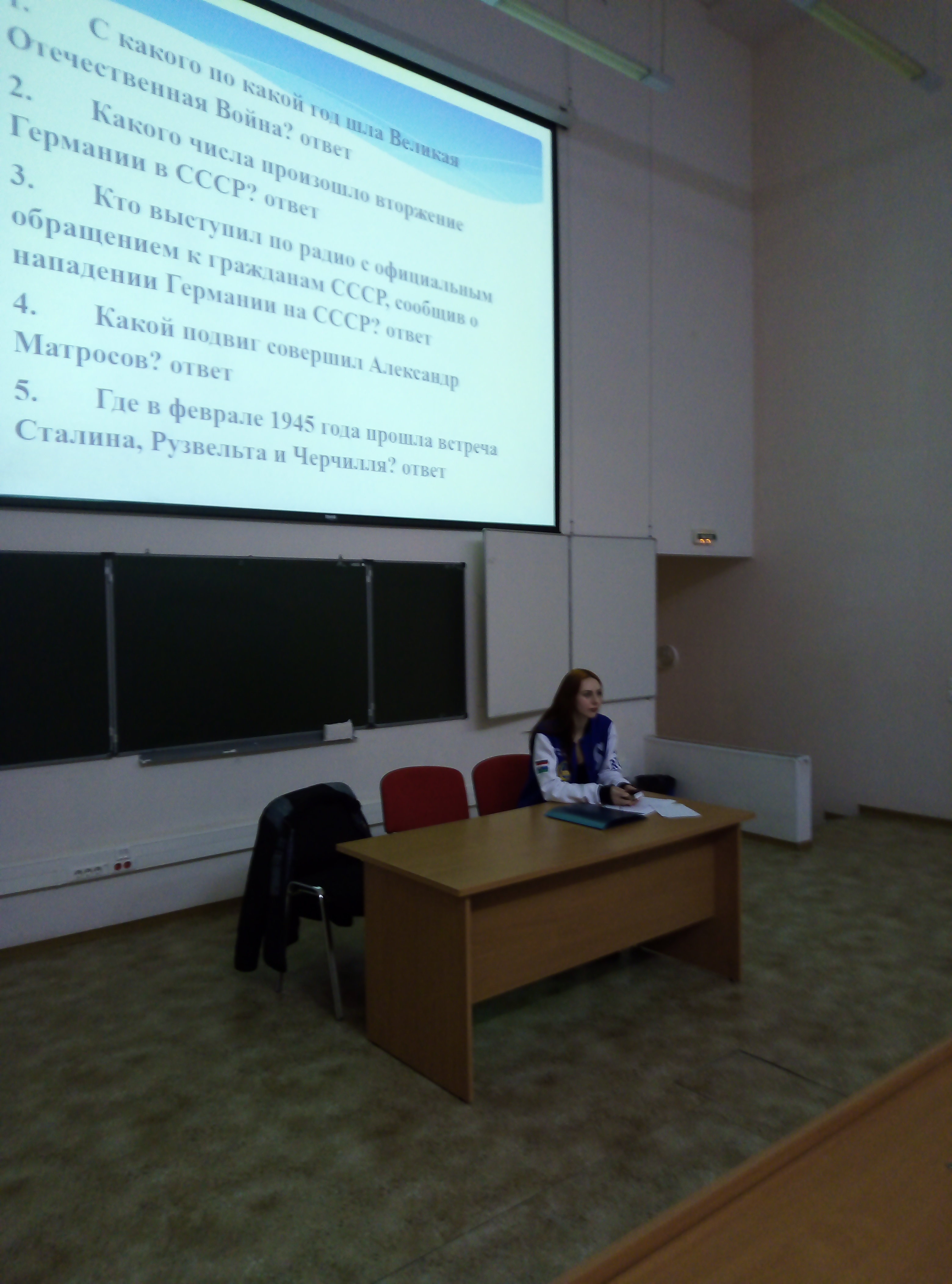 Викторина «Память» состояла из 30 вопросов о Великой Отечественной Войне, ответы на которые нужно было дать в течение двенадцати минут.
