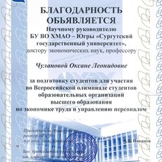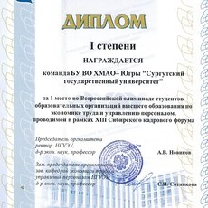 Будущие дипломированные управленцы Института экономики и управления Сургутского госуниверситета, участники студенческого научного кружка «Инновационные технологии в управлении персоналом», под руководством профессора кафедры государственного и муниципального управления и управления персоналом Оксаны Чулановой приняли участие во Всероссийской студенческой олимпиаде по экономике труда и управлению персоналом, а также во Всероссийском конкурсе студенческих исследовательских работ в области экономики труда и управления персоналом, посвященного памяти В. И. Занина.