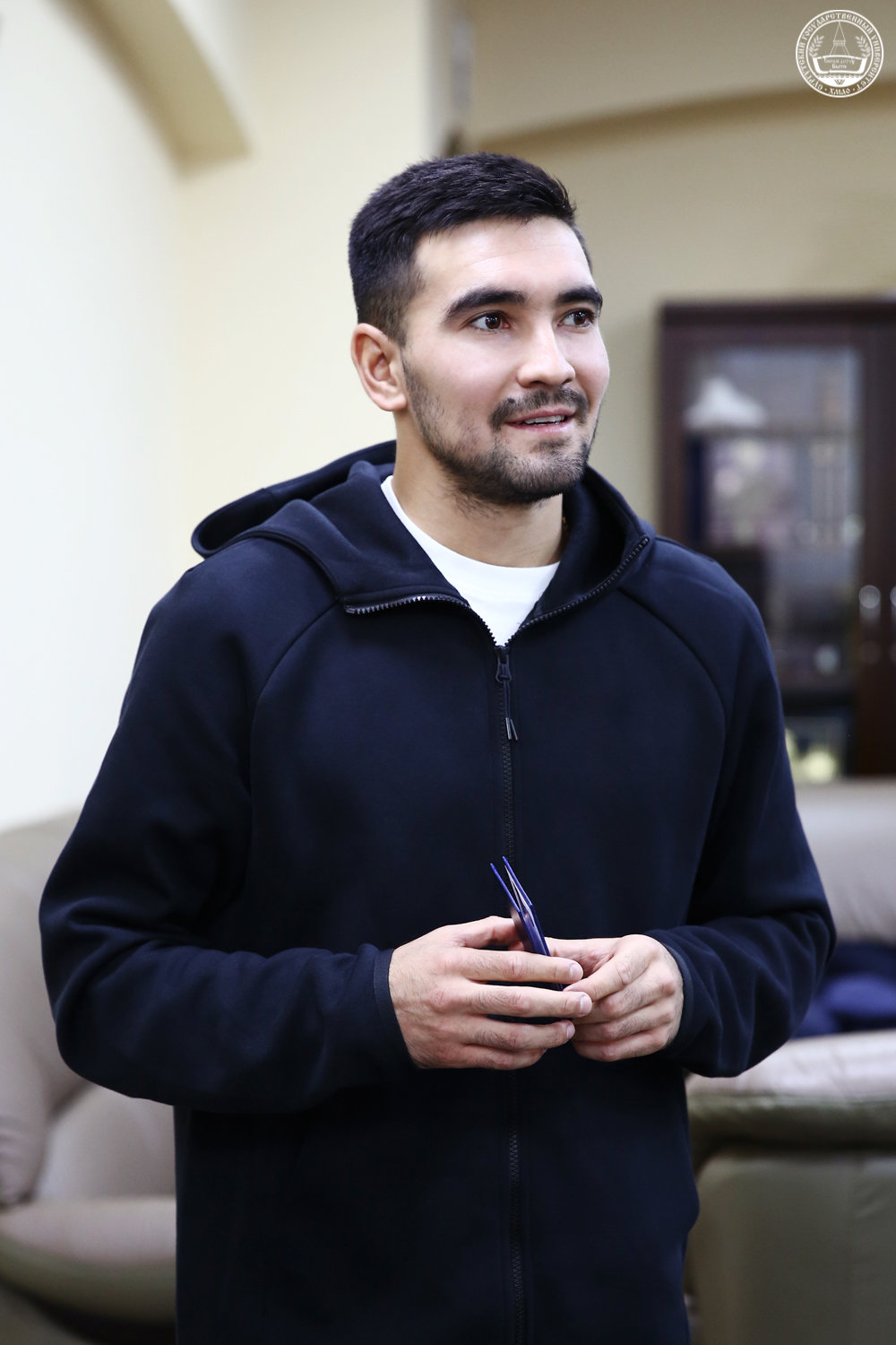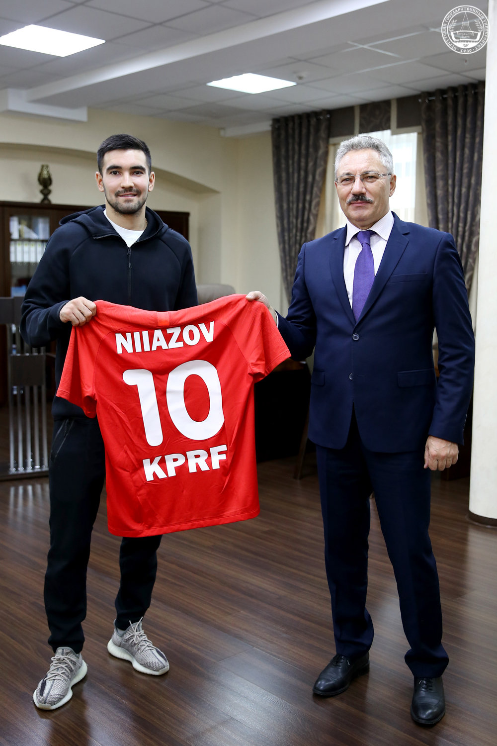 «Думать»! «Действовать» и «Достигать»! – главный принцип Сургутского госуниверситета, который точно совпадает с жизненным кредо Артема Ниязова. В ряды первого классического университета Югры он вступил в этом году, получив лично из рук ректора Сергея Косенка студенческий билет, а также наставления: «По глазам видно – хороший парень, скромный, не разбалованный, что крайне важно. Значит он способен ценить все, что ему преподносится свыше. Учитесь на «отлично» и впредь показывайте достойные результаты!» В ответ Артем преподнес подарок Сергею Михайловичу – фирменную футболку с номером футболиста.