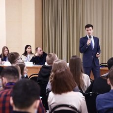 После выступления А. Клишина студенты просто облепили его вопросами о возможности трудоустройства, а также прохождения производственной и преддипломной практики.