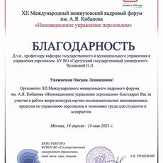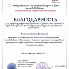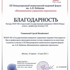 В Государственном университете управления (г. Москва) подвели итоги XII Международного межвузовского кадрового форума им. А. Я. Кибанова «Инновационное управление персоналом». Более 500 студентов и преподавателей вузов, представителей организаций реального сектора экономики не только России, но и других стран приняли участие в его онлайн-работе. По традиции не упустил возможность показать уровень подготовки студентов, их конкурентоспособность на рынке труда и Сургутский госуниверситет.