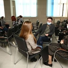 – Было очень познавательно послушать о том, как нужно вести себя на публике, как правильно говорить, двигаться, держать контакт с аудиторией. Как я поняла, нужно всегда смотреть в зал, жестикулировать, показывать эмоции, передвигаться по сцене и чувствовать при этом себя уверенно. Кроме того, залогом успешного выступления является краткое и интересное изложение темы. Это, наверное, основные пункты, на что стоит обратить внимание, – говорит первокурсница Института гуманитарного образования и спорта Валерия Кондыбко.