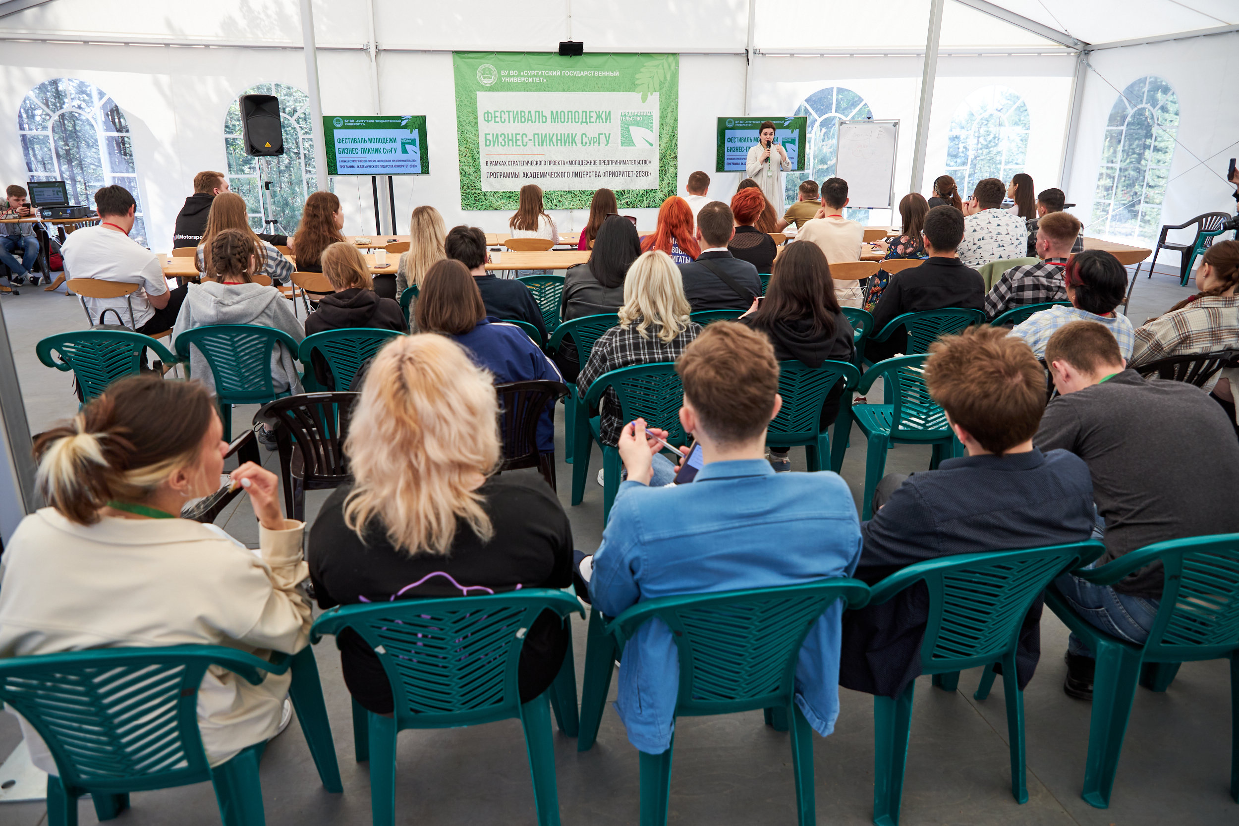 В своей речи заместитель губернатора Югры отметил, что в настоящее время актуальность развития молодежного предпринимательства, особенно в системе высшего образования, вынесена на государственный уровень. «Результатом работы в данном направлении становится не только наращивание компетенций в части предпринимательской деятельности, но и закрепление тех навыков, которые позволяют превращать знания в технологии и продукты. Ценно, что Сургутский государственный университет осознает важность подобных компетенций для молодежи и ведет системную работу в данном направлении. Реализация проекта в сфере развития предпринимательской активности приведет к созданию новых субъектов предпринимательства, позволит создать новые рабочие места как для молодежи округа, так и региона. Системный подход к формированию и реализации предпринимательской инициативы в рамках проекта позволяет молодым людям повысить уровень реализации бизнес-проектов, а значит и их экономическую эффективность. Отмечу немаловажный факт, что успешность бизнес-проектов предпринимателей округа способствует диверсификации экономики, увеличению регионального валового продукта и росту объема налоговых поступлений от деятельности субъектов предпринимательства. С 2021 года на базе университета реализуется проект “Молодежное предпринимательство 2030” в рамках программы стратегического академического лидерства “Приоритет–2030”, целью которого является вовлечение молодежи в предпринимательскую активность для создания стартапов. Мероприятие проводится при поддержке Правительства Ханты-Мансийского автономного округа – Югры, Фонда поддержки предпринимательства Югры «Мой бизнес», Технопарка высоких технологий Югры и администрации города Сургута. Такой формат дает отличную возможность пообщаться в неформальной творческой обстановке с лидерами рынка и топовыми специалистами в формате открытого и эффективного общения. Надеюсь, что проекты, разработанные на бизнес-пикнике, пройдут путь от идеи до реализации под патронажем сегодняшних экспертов и почетных гостей», – резюмировал Всеволод Кольцов, обратив внимание собравшихся на том, что особую популярность среди молодежи получили следующие направления предпринимательской деятельности: предпринимательство в сфере креативных индустрий, IT-предпринимательство, социальное предпринимательство.
