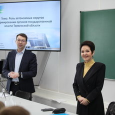Третья по счету лекция для студентов Института государства и права Сургутского госуниверситета в рамках дисциплины «Политические процессы Тюменской области», прошедшая в именной аудитории Г.А. Резяповой, члена Попечительского совета СурГУ, почетного доктора Сургутского госуниверситета, кандидата педагогических наук, заместителя председателя Тюменской областной Думы, состоялась в День российского парламентаризма. Этот праздник учрежден 27 июня 2012 года и символизирует преемственность государственных и парламентских традиций. На этот раз спикеры – Галина Резяпова и кандидат исторических наук, доцент кафедры политологии Дмитрий Сердюков рассказали молодым людям о роли автономных округов в формировании органов государственной власти Тюменской области.