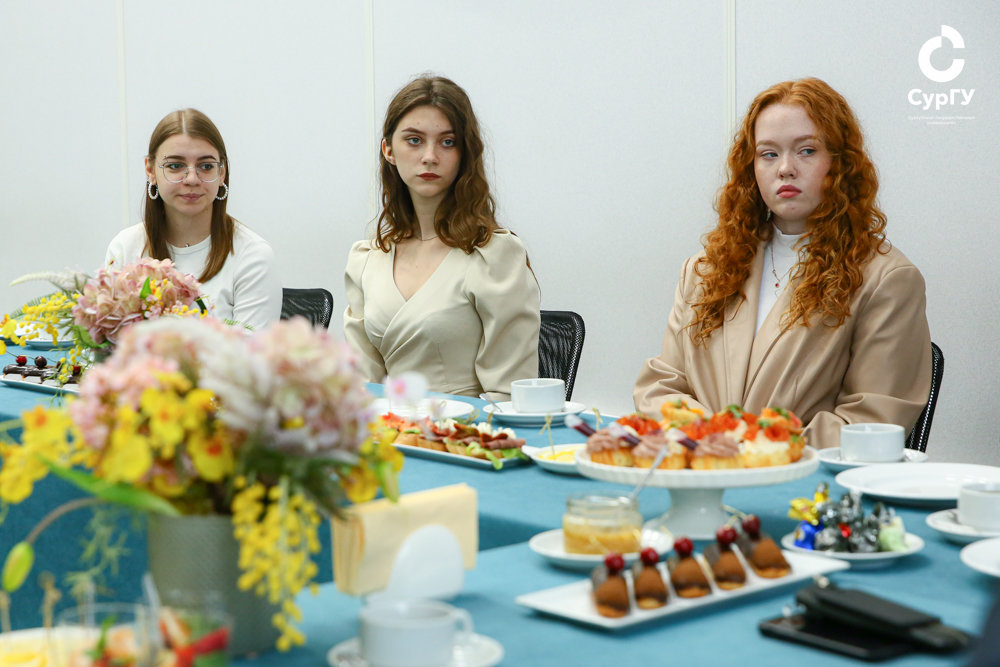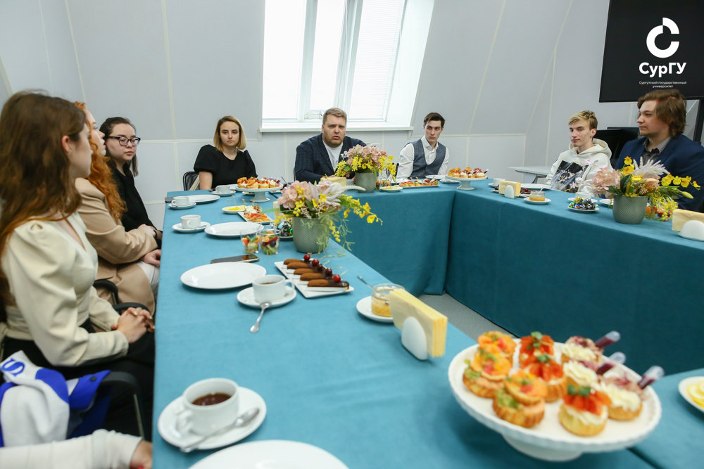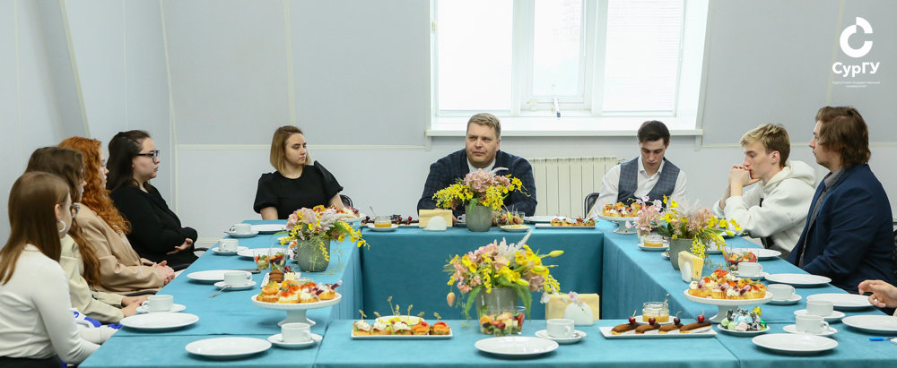 Завершилось чаепитие напутственным словом от Святослава Вячеславовича. Он отметил, что молодость – это то время, когда необходимо инвестировать в себя и свое развитие, нарабатывать полезный опыт и связи. Кроме этого, подчеркнул проректор по молодежной политике, не стоит стесняться говорить о своем студенчестве в СурГУ – по его мнению, это позволяет узнать об университете большему числу людей, а для самого студента служит поводом для гордости. И, разумеется, делать все, чтобы о студентах СурГУ отзывались исключительно добрым словом, демонстрировать безупречную нравственность. «Из любой мелочи складывается большое будущее», – сказал Святослав Вячеславович.