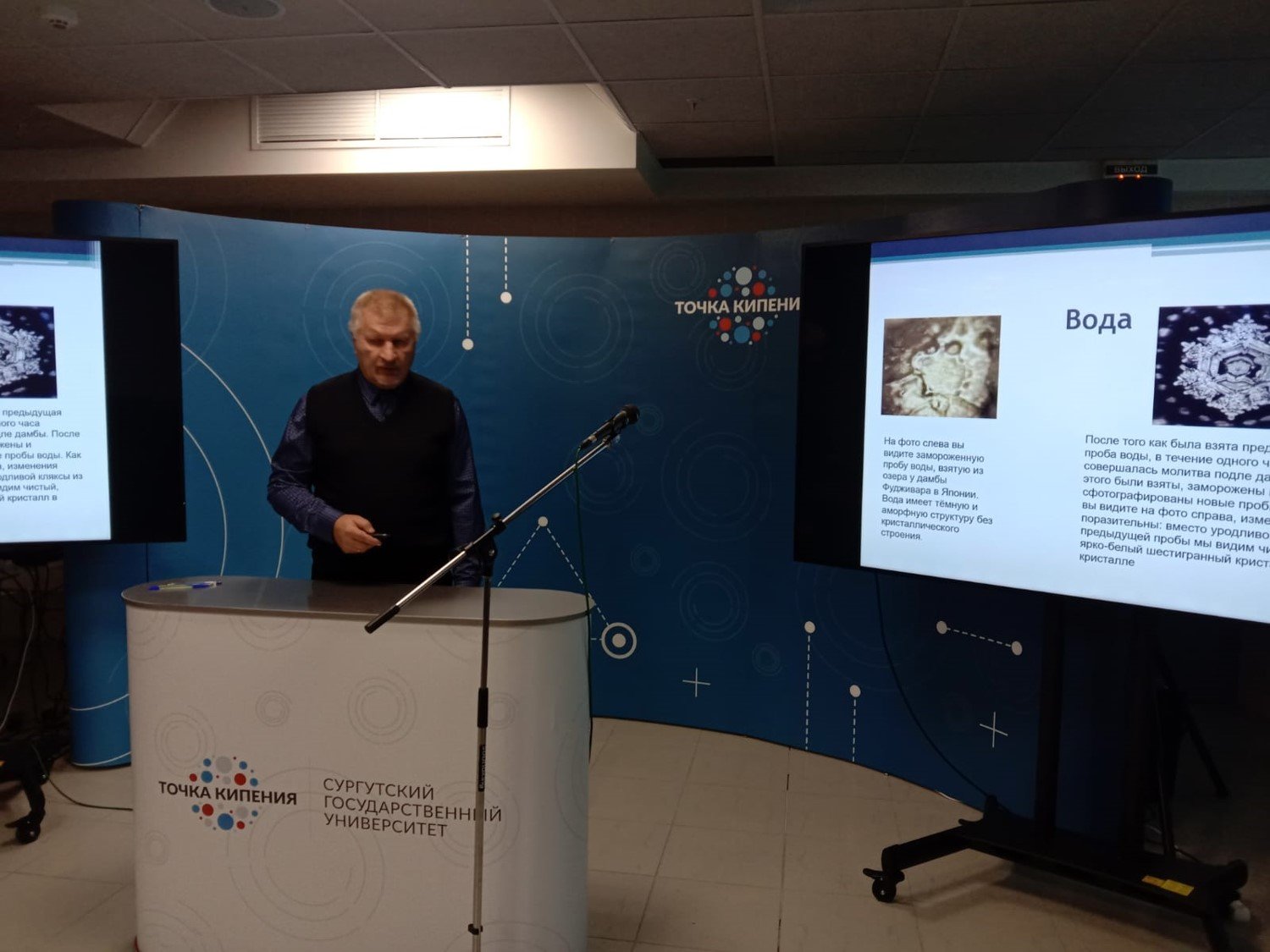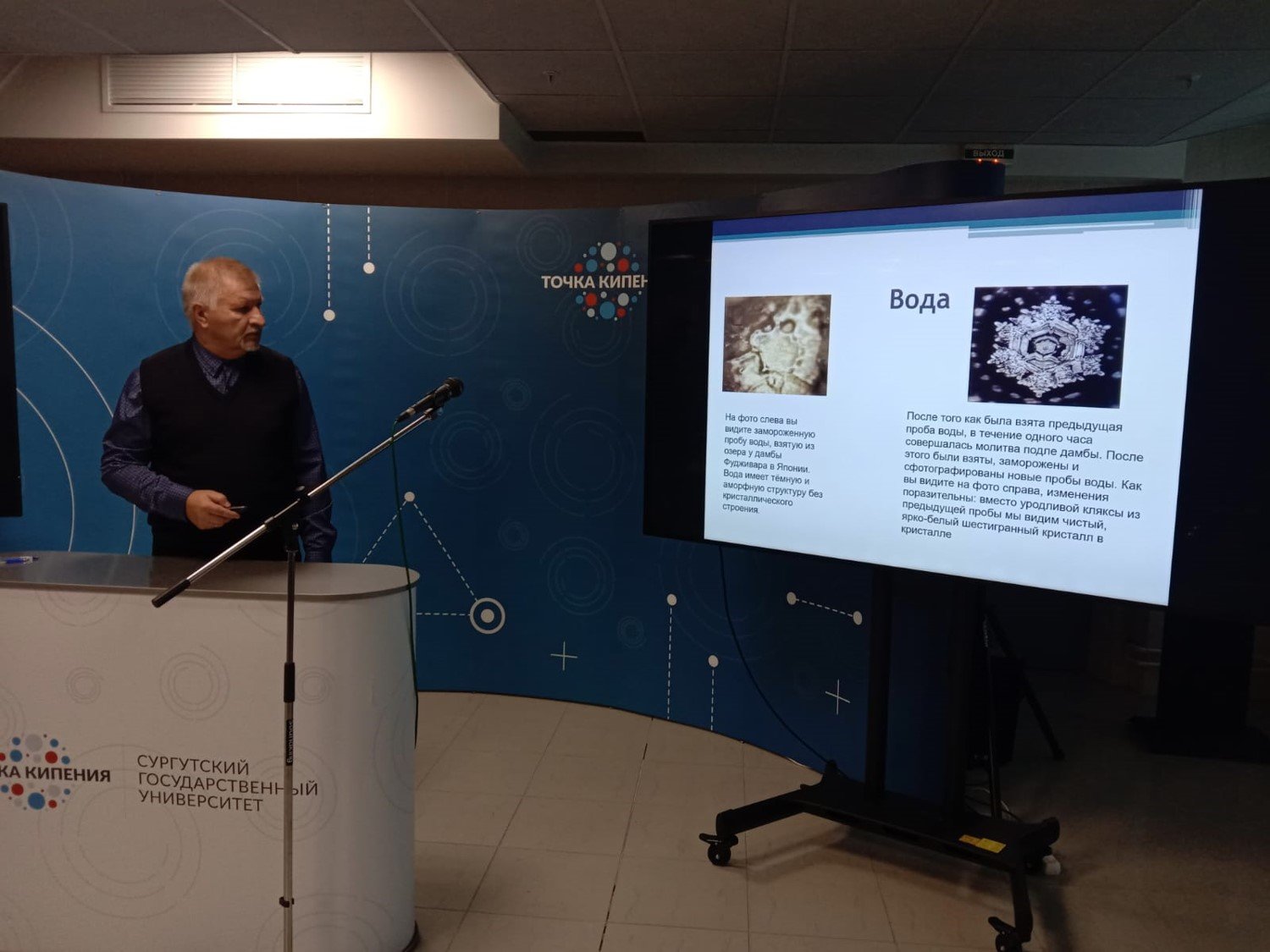 В Сургутском государственном университете 25.09.2024 г. в 11:00 в рамках научно-популярного лектория прошла очередная открытая лекция для студентов Политехнического института и физико-математического сообщества по интересной теме «Удивительные свойства жидкости».