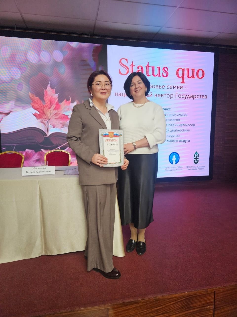 Врач акушер-гинеколог Сургутского окружного клинического центра охраны материнства и детства, аспирант кафедры акушерства, гинекологии и перинатологии СурГУ Манетли Кельдасова заняла почетное третье место в конкурсе молодых ученых, который проходил в Челябинске в рамках научного конгресса «Здоровье семьи – национальное достояние». Это событие объединило врачей гинекологов, неонатологов, анестезиологов-реаниматологов службы пренатальной диагностики и фетальной хирургии Уральского федерального округа.