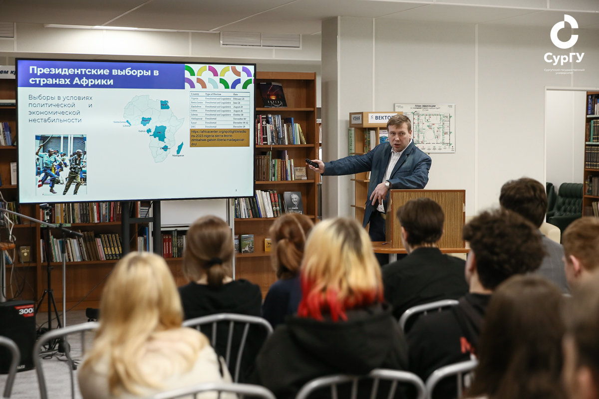 В преддверии выборов президента России, которые пройдут с 15 по 17 марта, в СурГУ запустили научно-просветительский проект «Избирательный процесс в России и в мире». Это совместная работа территориальной избирательной комиссии города Сургута и кафедры политологии Сургутского госуниверситета. Цикл лекций рассчитан на шесть дней. Старт был дан вчера, 6 февраля. Перед школьниками выступили старшие преподаватели кафедры Нарине Товмасян, которая поведала слушателям об институте главы государства, и Виктория Пуртова, рассказавшая о сильных и слабых сторонах президентской системы. А доцент кафедры политологии Василий Мархинин провел краткий экскурс по избирательным кампаниям кандидатов в президенты, которые баллотировались в прошлом году в различных уголках мира. Они, к слову, прошли в 20 государствах: Африке (8 избирательных кампаний), Северной и Южной Америке (5), Азии (3) и Европе (4).