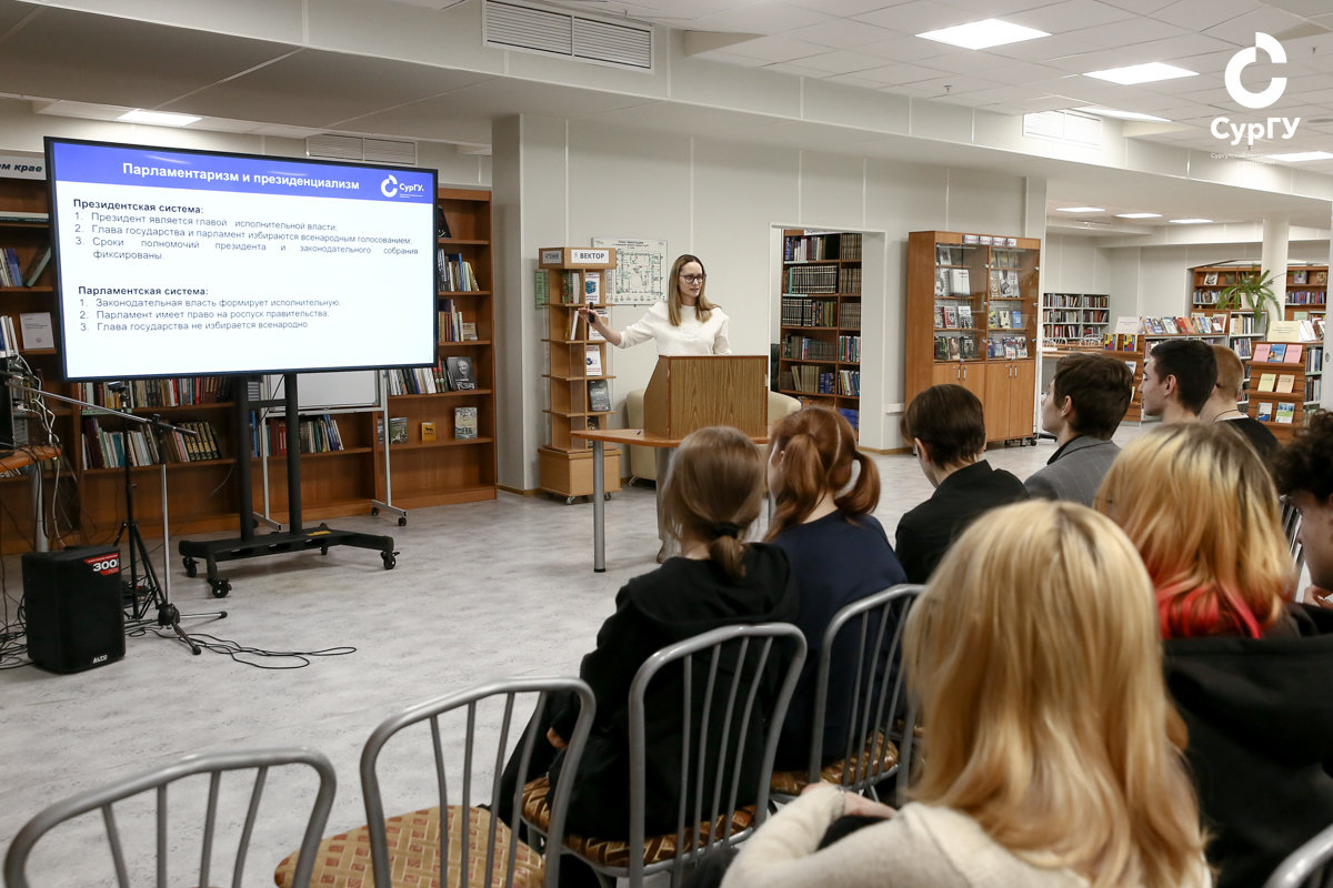 С лекциями 7 февраля выступят: заведующая кафедрой политологии СурГУ Надежда Ушакова с темой: «История президентских выборов в России»; доцент кафедры Дмитрий Сердюков расскажет об Институте президентства в единой системе публичной власти и старший преподаватель Алена Габеркорн, которая представит на основе результатов проведенных социологических исследований «Отношение к институту власти и выборам».
