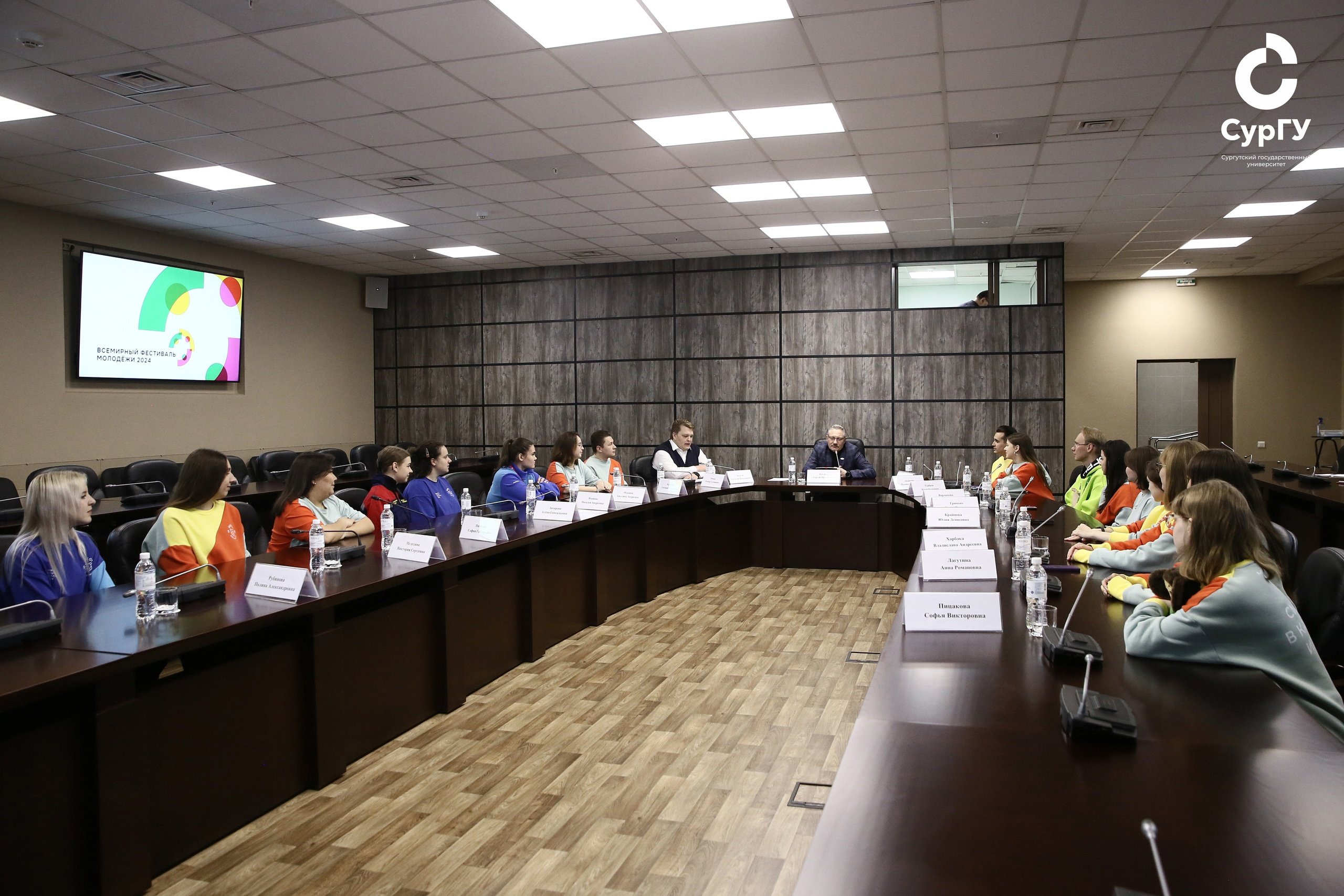 В зале Ученого совета собрались представители СурГУ. Они поделились своими впечатлениями и идеями, в том числе рассказали Сергею Михайловичу о задачах, которые решали на полях масштабного фестиваля всегда очень ответственно и основательно. Каждый из них получил колоссальный опыт, достойно проявил себя, прославил не только родной университет и город, но и весь автономный округ.