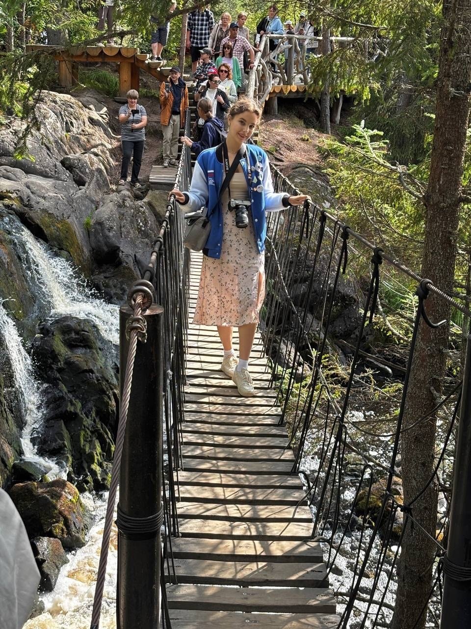 – Больше всего понравился горный парк с большим испанским карьером, рускеальские водопады – красота невероятная. Интересный факт: в Карелии все названия городов, населенных пунктов – финские, необычные, ударение падает на первый слог, – рассказывает второкурсница Института естественных и технических наук СурГУ Полина Пелымская.