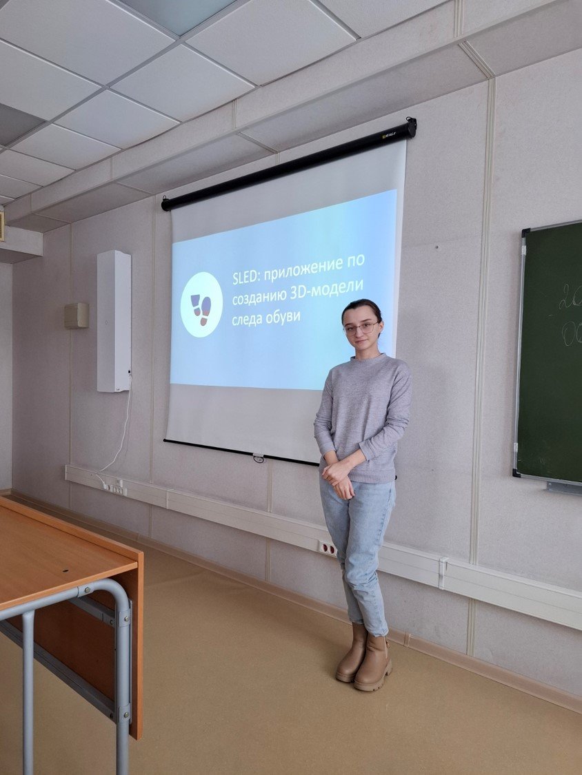 В связи с этим достойно упоминания приложение «СЛЕД» – проект, разработанный студенткой четвертого курса Института государства и права Викторией Масюковой и представленный 24 февраля на заседании студенческого научного кружка кафедры публичного и уголовного права. По замыслу автора, приложение сможет строить 3D-модель следа обуви на основе его 2D-изображения, просчитывать характеристики и ключевые параметры отпечатка. Анализ планируется проводить с использованием ИИ-методов, что в перспективе может упростить фиксацию следов обуви на рыхлых и любых других поверхностях.