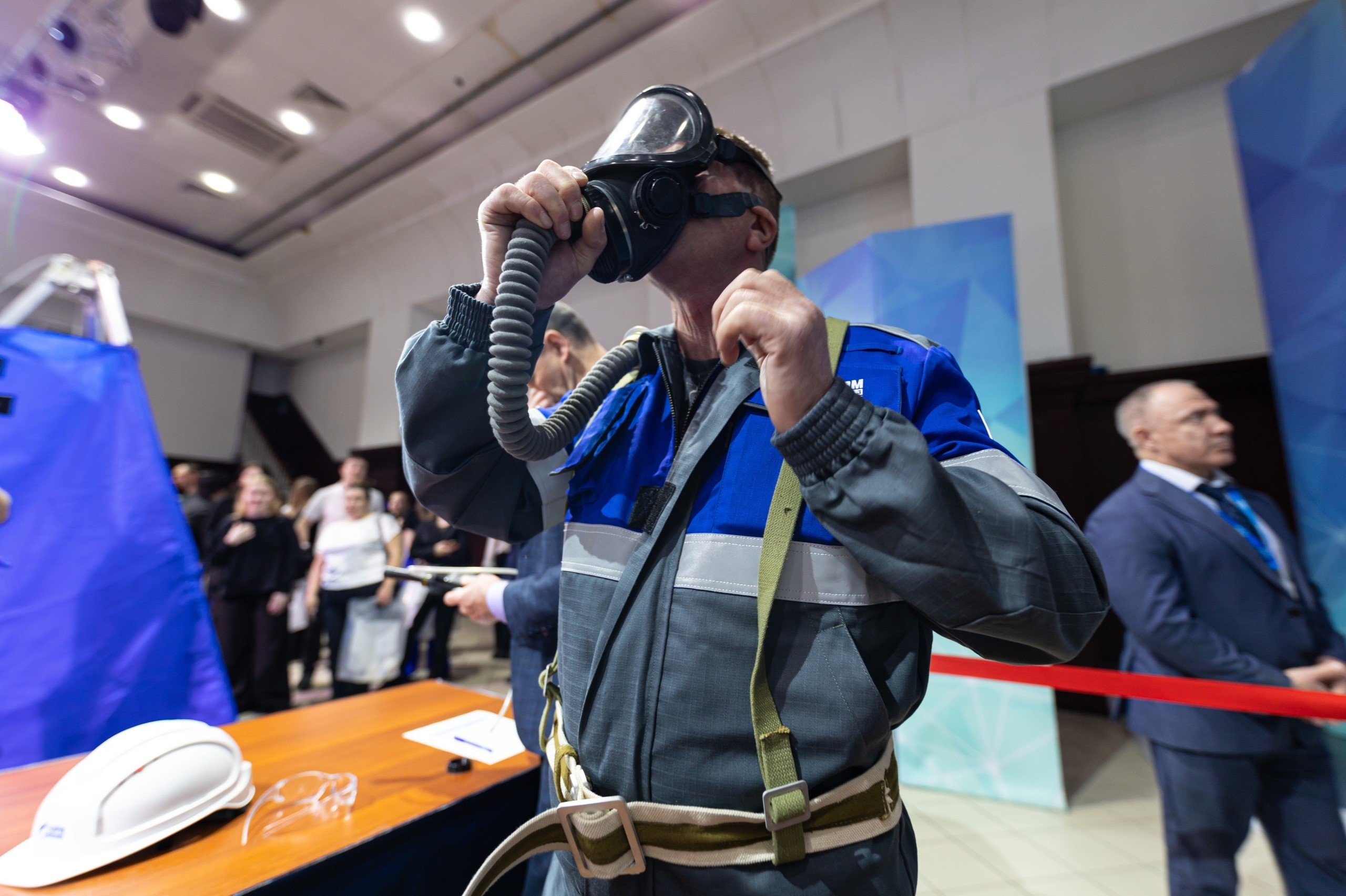 2️. Работа в ограниченном пространстве: инструктаж, проверка СИЗ, надевание противогаза и спасение «пострадавшего» в условиях, максимально приближенных к реальным.