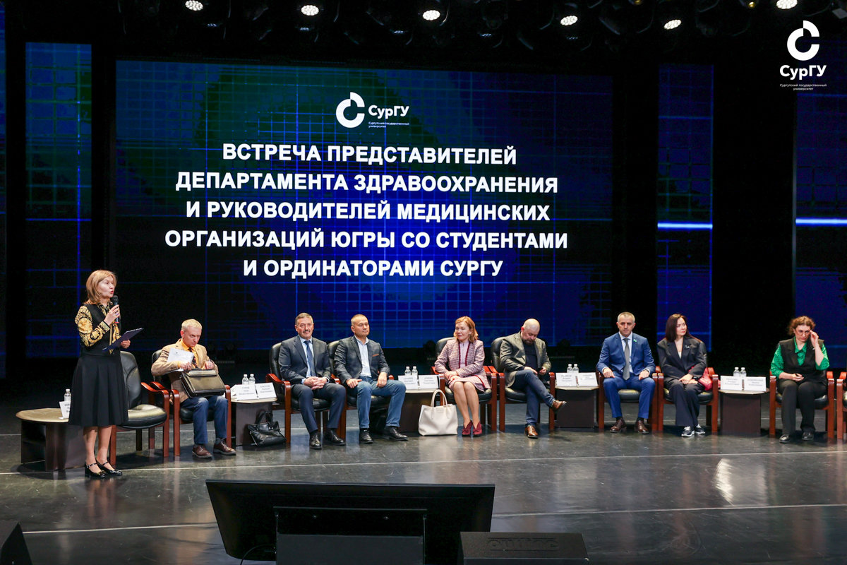 Представители Департамента здравоохранения Ханты-Мансийского автономного округа – Югры и руководители медицинских учреждений региона 27 мая встретились со студентами и ординаторами Медицинского института Сургутского государственного университета. Мероприятие, прошедшее на площадке Театра СурГУ, было посвящено презентации работодателей, возможностям целевого обучения и социальным гарантиям для будущих медиков.